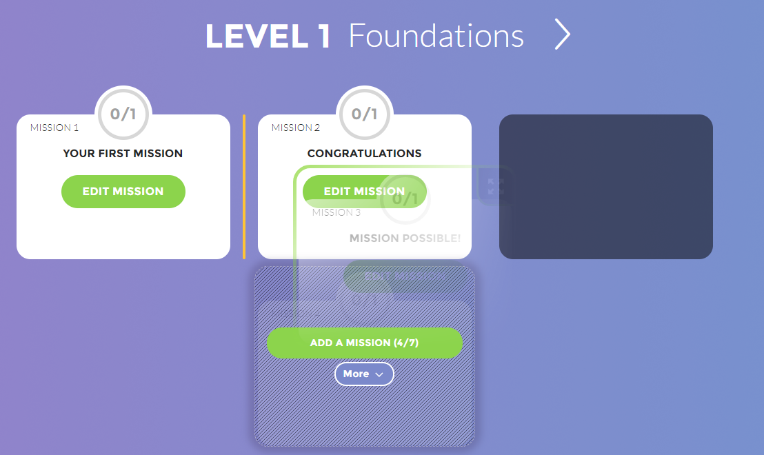 To move a Mission within a Level, click on the white section of the mission (not edit mission) and just drag the Mission and drop it at the desired place.