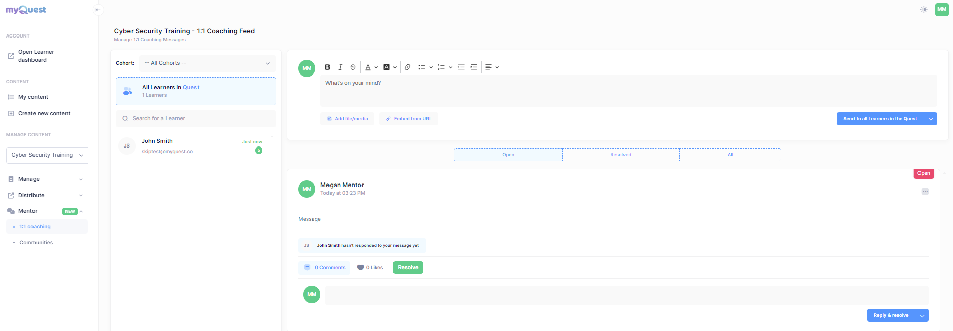 To help you get acquainted with the new interface, we've prepared a comprehensive video guide. This tutorial will walk you through the features of the mentoring capabilities through the myQuest LMS Admin Portal and show you how to make the most of your mentoring experience.